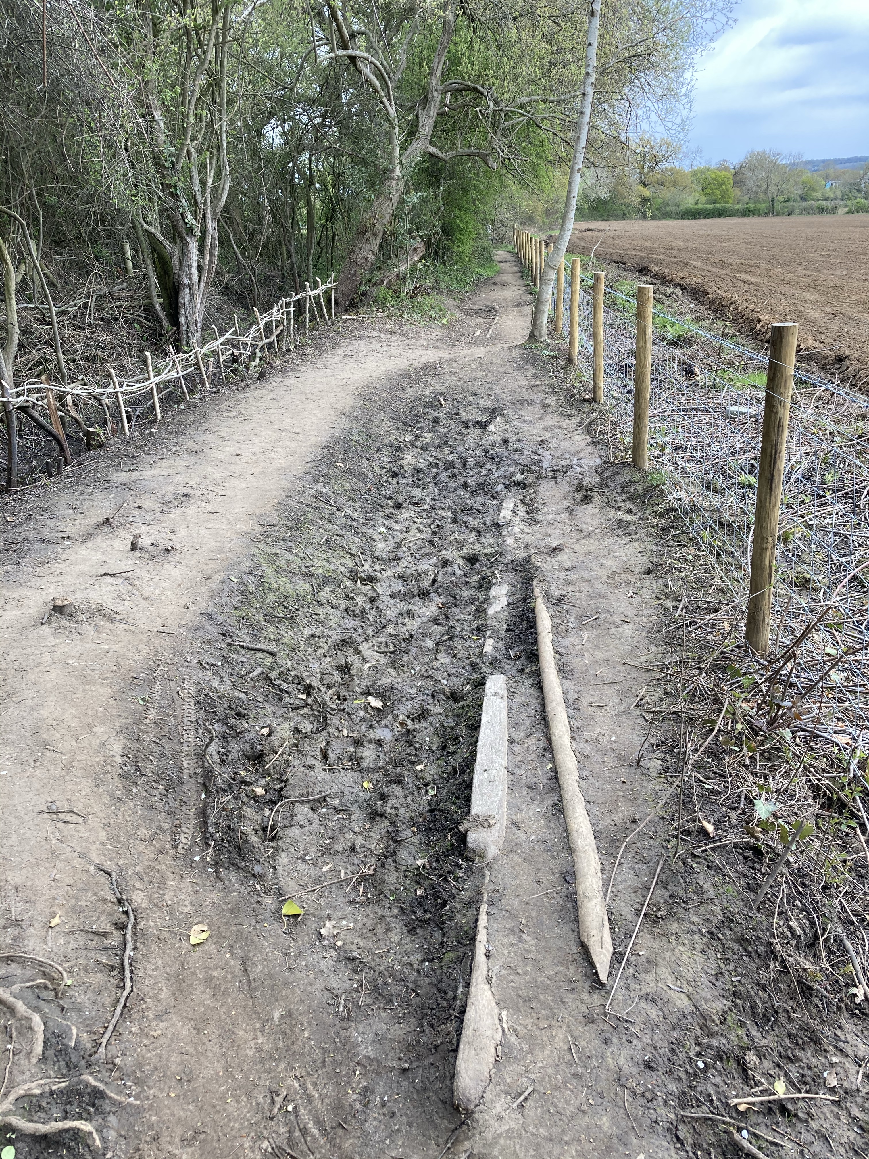To you this might look like a rather boring path. To me, it is amazing. In those distant pre-COVID days of February 2020, which was possibly the wettest on record, I spent a lot of time walking on this path. Then, it was approached by a bog of shoe-sucking squelchy mud, (now just dry rutted ground) followed by a walk uphill with a collapsing fence, overgrown foliage (overgrown in the “bend double with your backpack on and still get tangled up in it” sort of way) and more mud. So you can see why this open, hardly-muddy-at-all, newly fenced, shorn of overgrown vegetation path is a source of joy.