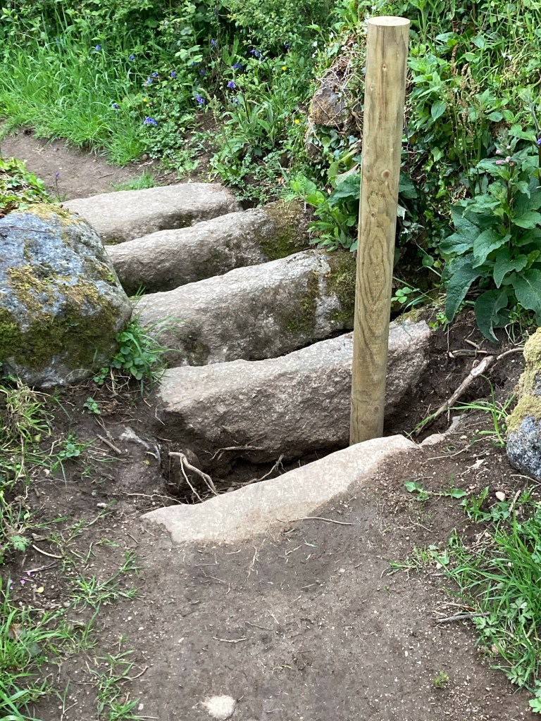 Today’s main hazard was the stiles. Cornish stiles (at least the ones round here, I’ll report on those further north in due course) are made of large slabs of granite-rather like a cattle grid made of stone. There are also ones arranged in a stepped way. Neither are good on a wet and windy day-either you risk slipping into the potentially ankle-breaking gap, or being blow over when a gust of wind hits you at the top.