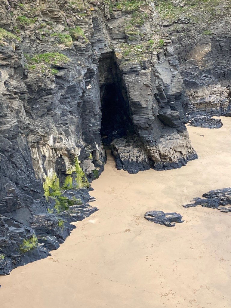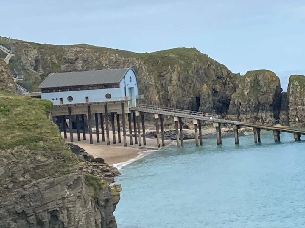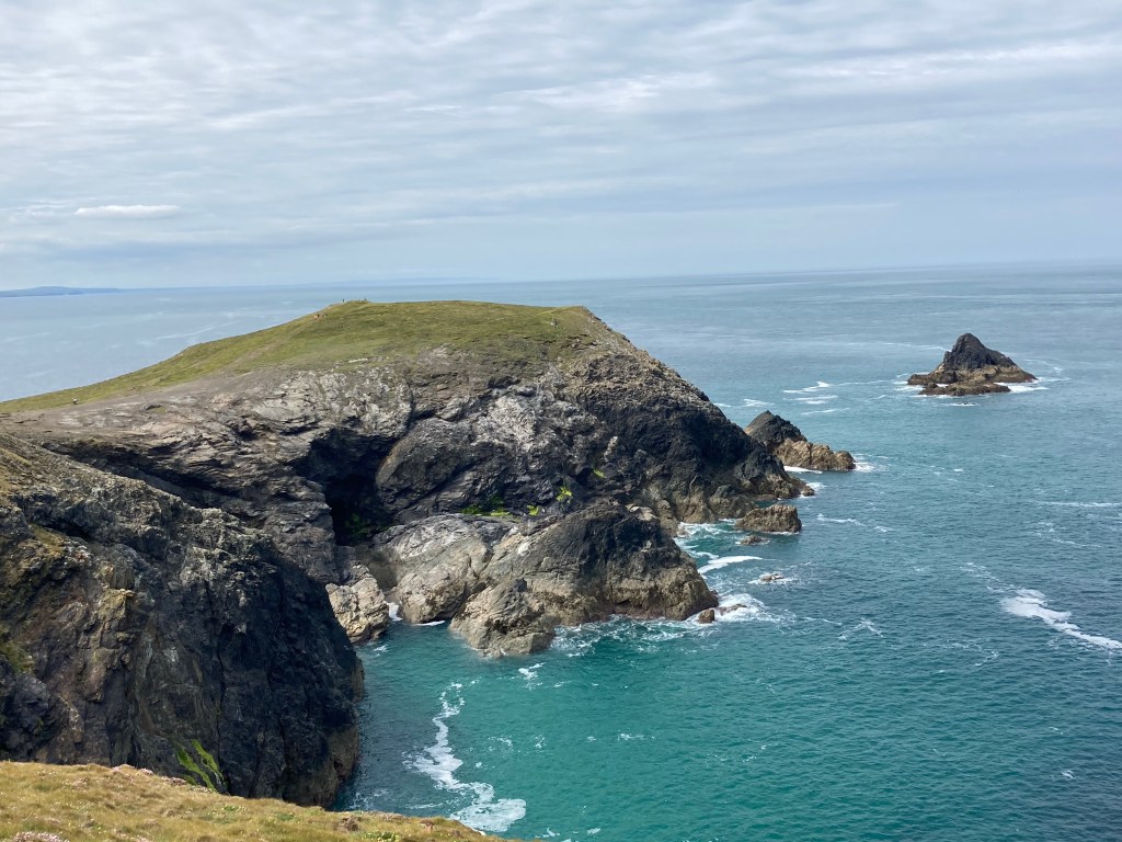 The morning was marked by sandy beaches. First up was Treyarnon Bay swiftly followed by Constantine and Booby’s Bays. The tide was out, the weather was good, and I made my way round Trevose Head. I met a couple who were walking and camping part of the Path (easier to write than SWCP). They had decided that they would lighten their load by dispensing with sleeping bags, using only sleeping bag liners and thermal pyjamas. This sounded like a mistake to me. I was right, they were regretting it. We said our farewells (I feeling a little smug about my cosy night in my very soft and downy sleeping bag.) Another sandy bay, this time Mother Ivey’s Bay with a lifeboat station just by it. Next stop, the pub in Harlyn as I felt a refreshing orange juice and soda would hit the spot. But where was the pub? I consulted my map -should be very near. I then looked around me and found I had been standing in front of a sign saying Pub, turn left. I turned left. No pub, just a hole in the ground which used to be the pub-and according to a passerby, would be again. Just not now.