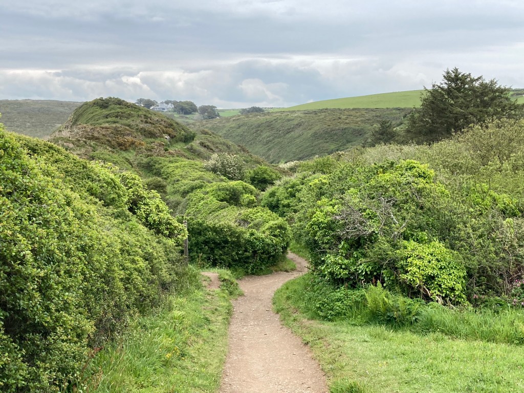 Today was again a day of headland skipping. I cut across inland to miss Pentire, and, in a small valley, I sat down for lunch.