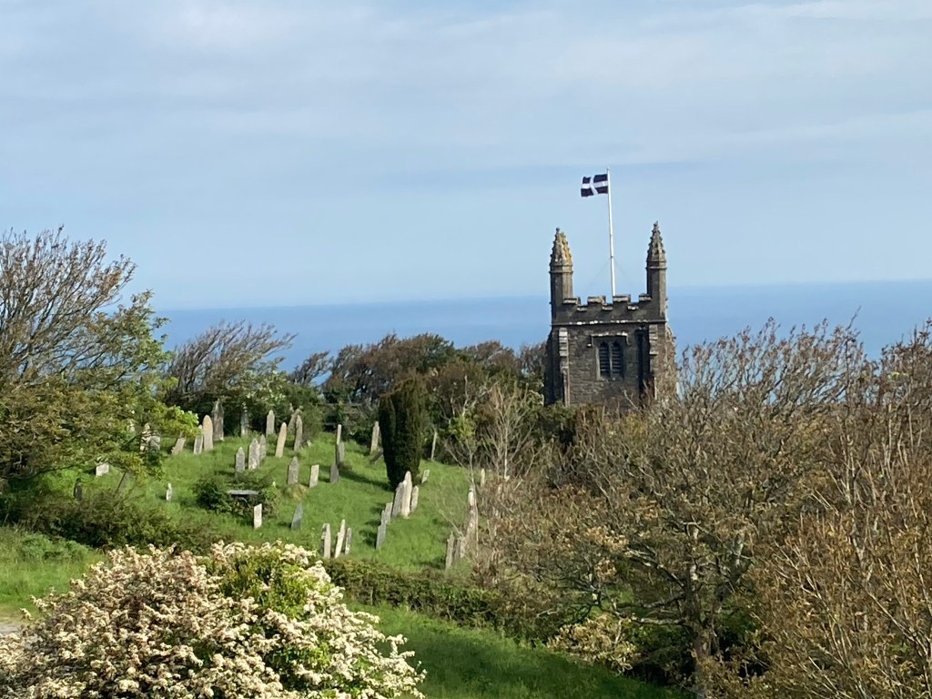 The church at St Genny’s, note the Cornish flag.