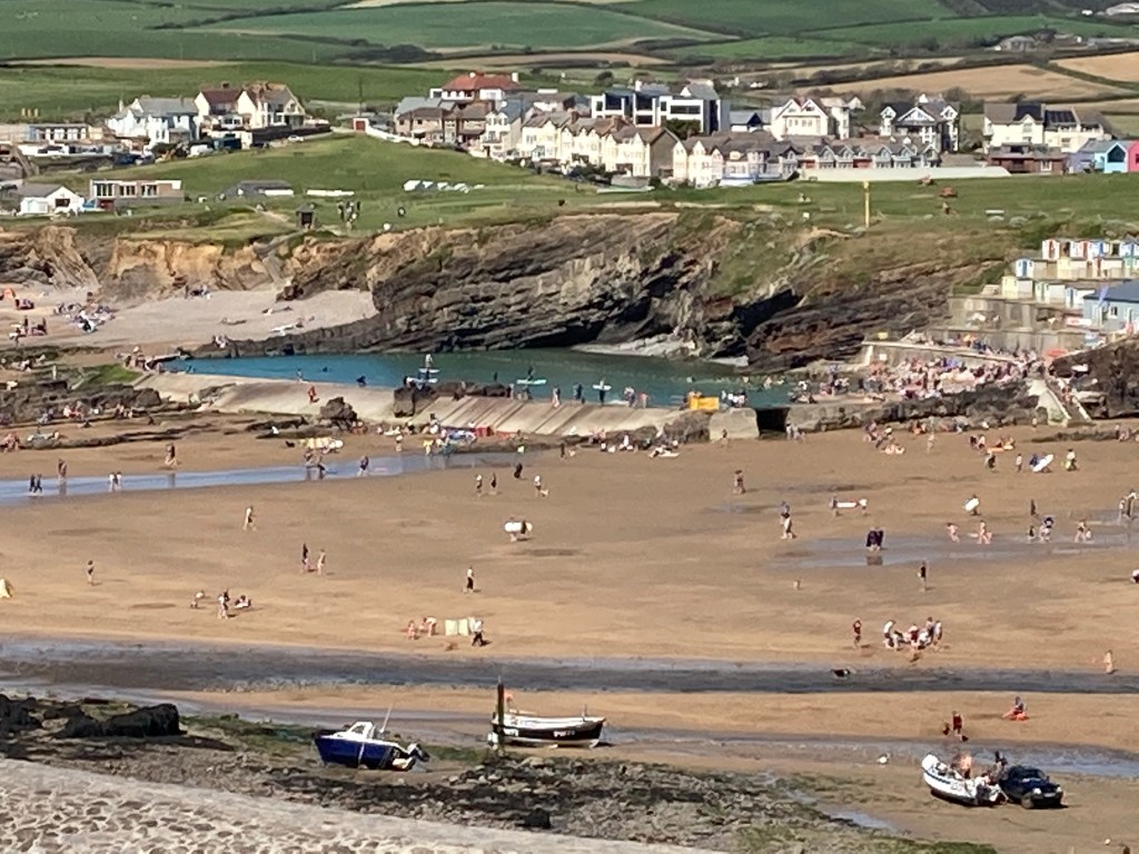 Bude was lovely. The tide was out , there were lots of people on the beach, I could hear a funfair in the distance. Moreover, the pub where I was staying was only 20 yards from the path