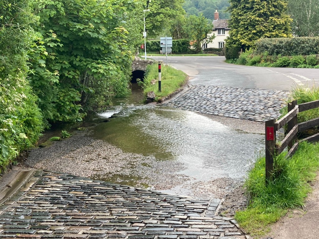 I left about 9.40 and didn’t patronise the village shop as I knew there was one at Winsford (not the Cheshire one, I’m sure they have plenty of shops). Unfortunately the shop in Winsford didn’t have a lot of stock. I had hoped for lunch, a couple of apples, and a biro. Failed, really, but I bought some flapjacks-for a rainy day-and headed to the tea rooms. Shut. I was talking to a local lady who told me that business wasn’t that good so they had reduced their hours and now only opened Thursday to Sunday. Today is Wednesday. On the other hand there was a ford.