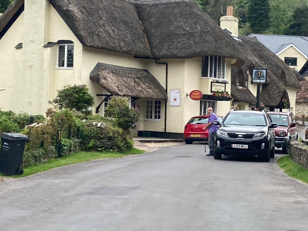 It was slightly chilly on the top of Lype Hill so I didn’t linger, but made my way downwards towards Luxborough. And I met, for the first time in two days, another walker. She was coming towards me, walking the Coleridge Way. Buoyed up by this brief meeting (she was a bit worried it would rain so didn’t stop to chat much) I too followed the Coleridge Way down to the Royal Oak where I am staying tonight hampered only by a broken gate. Couldn’t climb over at the hinge end, couldn’t budge the opening end. Of course, eventually I did budge it, although it took quite a bit of effort on my part.