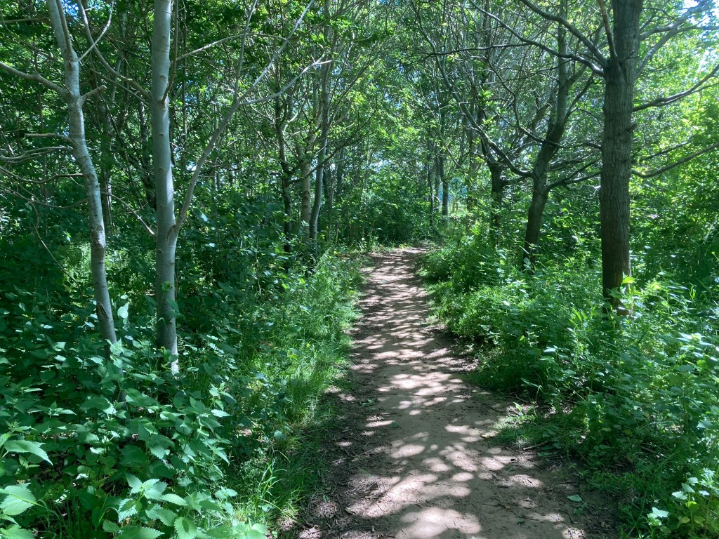 It was going to be a hot day so we were glad of the shade in the woodland as we left Nether Stowey. We were going to explore footpaths today, so armed with our trusty OS map and compass (oh alright, I’ve also got a trusty GPS as well as a trusty OS map on my phone) we headed down our first footpath. And came to a very overgrown orchard. We negotiated our way round only to be faced with an overgrown field. We headed for the road. The roads around here are quiet, and full of interest, although not much shade.