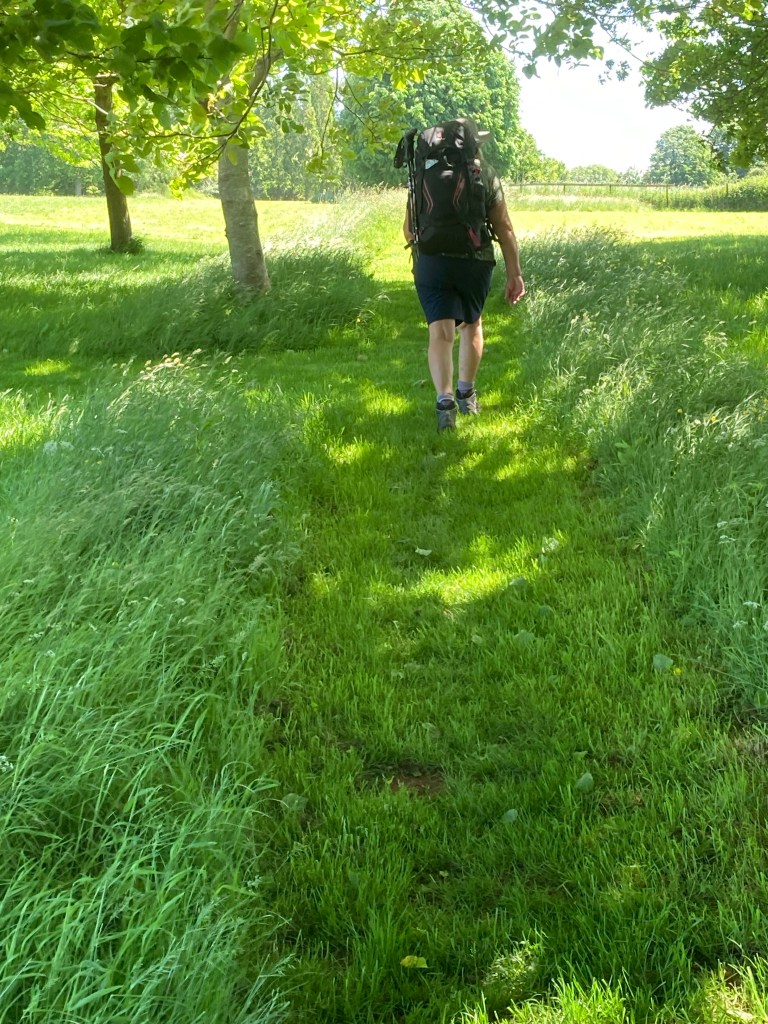 Wearily we made our way to our hotel where we had a room service meal as the restaurant was full and neither of us could face walking anywhere. Also my only pair of trousers, having survived a dunking in a stream with no marks, were covered in dirt after walking through this morning’s first field. As a result they are now drip drying in the bathroom and I am wearing my pyjamas.