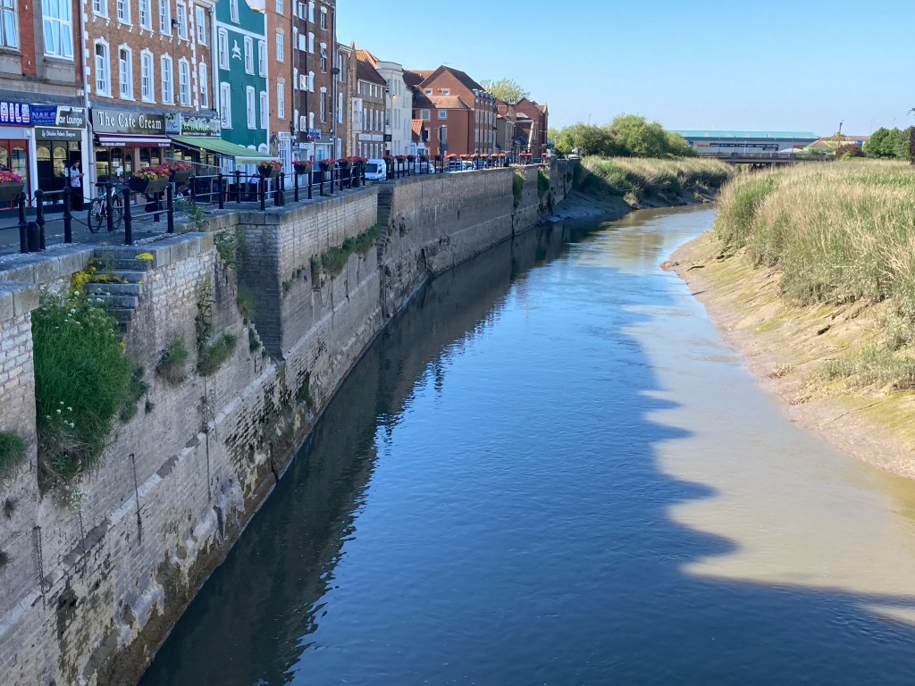 After that we had no more trouble with footpaths which was a good thing as if we had, it would have added several miles to our 12 mile day. Our last footpath lead us into Bridgwater through meadows. It was well way marked, and we could see our way ahead through a gap in the hedge. A gap that was blocked not only by cows and their calves but also a large bull. We skirted round the field hoping they might move. They didn’t. We scrambled through a hole in the hedge only to find more cows. We scrambled back (not that easy with overhanging branches and a backpack) and headed into another cow-free field, skirted round that and eventually ended up back on the path.