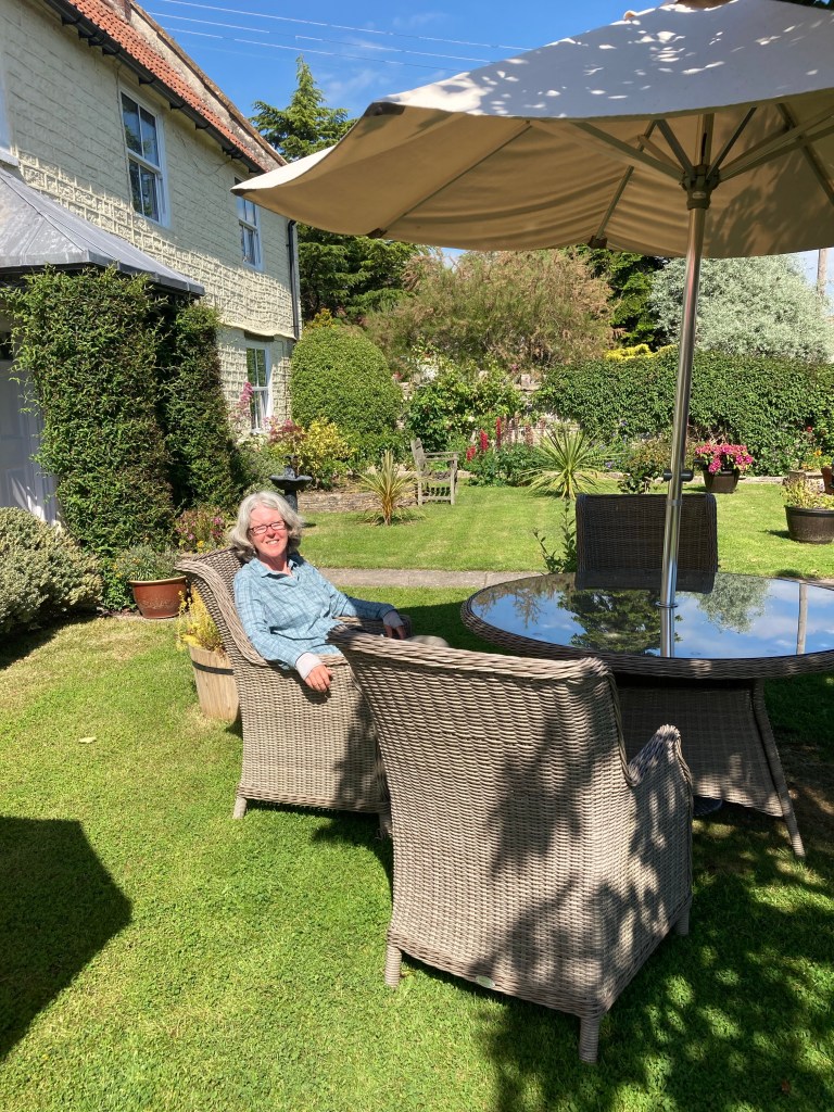 We had booked dinner in the local pub, which turned out to be only about a minute’s walk from the B&B. We had dinner outside-a good ending to a rather hot day.
