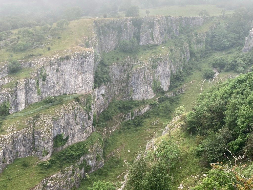 I would like to say that today started with an early morning climb up a misty and atmospheric Cheddar Gorge, but in reality it started with a trip to Tesco to stock up on lunch, and to a local bakery chain, Parsons, to stock up on flapjacks. By the time we started up the side of Cheddar Gorge-views, orchids, feral goats-it wasn’t very early but the clouds were still pretty low.