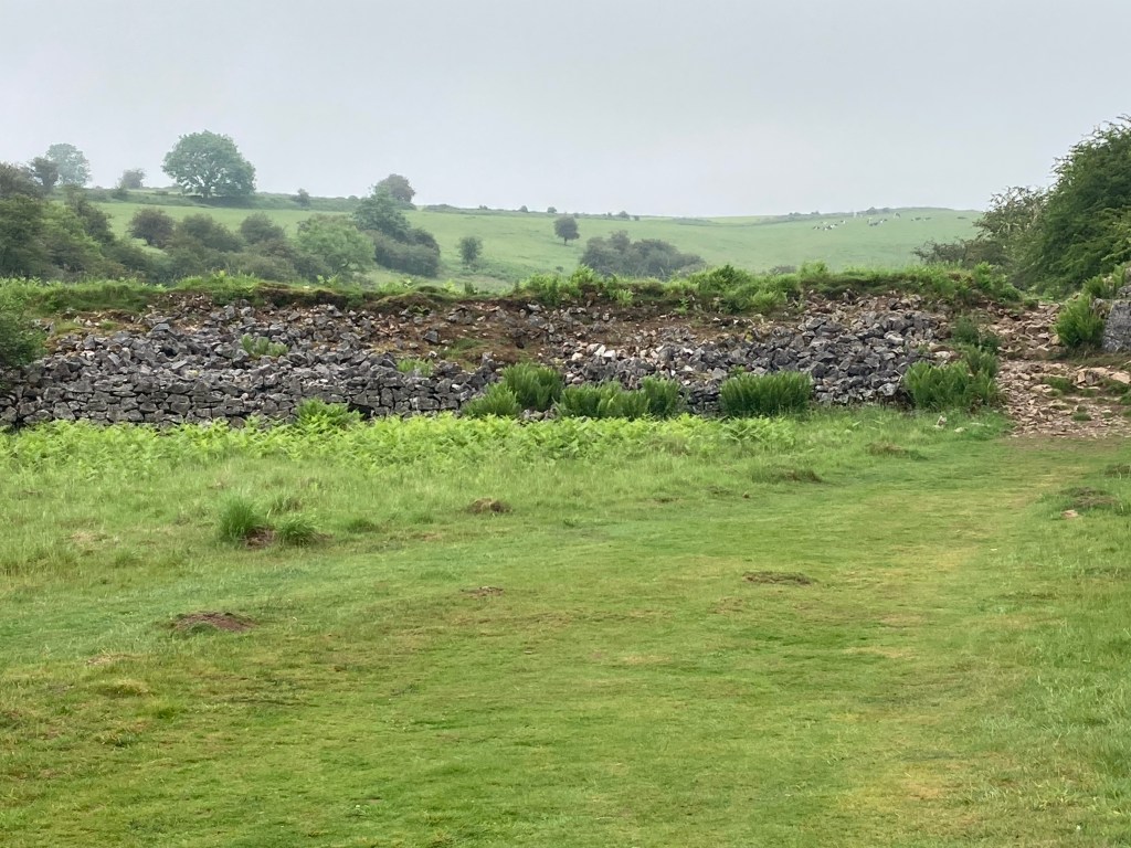 The gorge was spectacular and we carried on through Blackrock Bottom and then through Velvet Bottom. Velvet Bottom was very interesting, and very soft underfoot. Velvet-like, you might say. It was worked for lead in Roman times and again in Victorian times. The high proportion of lead in the soil has affected the vegetation-not that we knew that at the time. I’ve had to rely on the Somerset Wildlife Trust website for information- there was no signal in the valley so the QR code on the notice board was useless. From our point of view, the landscape was clearly manmade. There were washing pools known as buddle pits, slag heaps and shiny black rocks like jet on the paths. I did try and take a photo of a shiny black rock but, I have to say, it looked rather turd-like so I haven’t included it.*