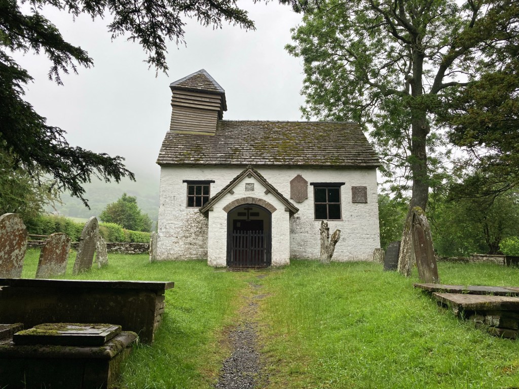 I took very few photos today because in the damp the whole zipping/unzipping thing rears it’s ugly head again. Phone in waterproof cover that only just fits in trouser pocket which in turn is accessed through zipped pocket of waterproof trousers… However, mindful of my readership, I did take a photo of St Mary the Virgin Anglican Church at Capell-y-Ffin as it looked so quaint.
