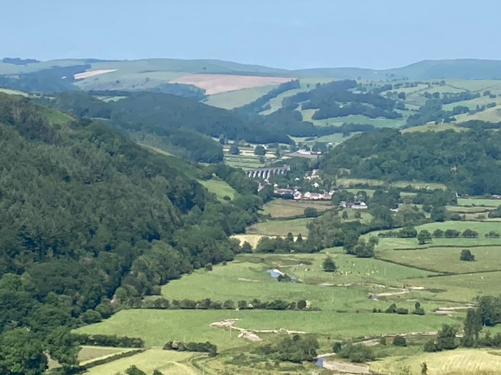 A sign had informed us that we were entering the South Shropshire Hills Area of Outstanding Natural Beauty (AONB) and, it was true, the views were spectacular. it was also true that it was rather hot and sunny. We were passed by two women walkers and leapfrogged them for the rest of the day. We met two southbound walkers-Duncan, “You must be Rose” -and Simon “Which one of you is Rose?” And “How far ahead is Duncan?” It turned out that they had both met Karen at the campsite at Mellington and she had told them about me. The other two women walkers were a little bemused by my fame.