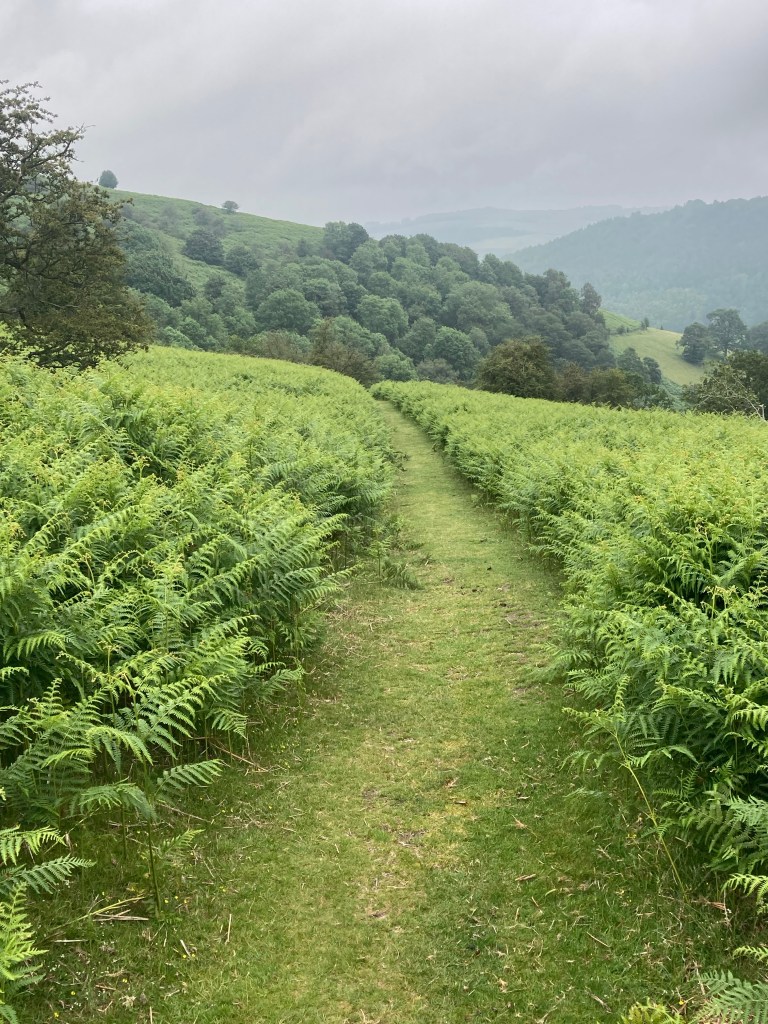 The descent into Knighton started pleasantly enough but then turned downhill more steeply. It carried on steeply, knee-judderingly, toenail-wreckingly down, and further down until suddenly, having been in woodland it spat me out at a row of garages in Knighton, from where I made my way to my accommodation.