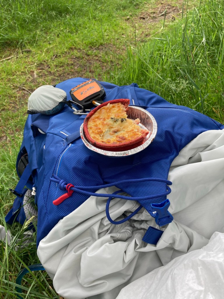 And what should I see but a picnic table. Hooray. Just in time for a spot of flapjack. I sat down, relaxed, and must have lent slightly backwards only to tumble into the grass behind me as the bench separated from the table. Oh well. I picked myself up, replaced the bench and sat astride it, leaning slightly forward this time. It worked.