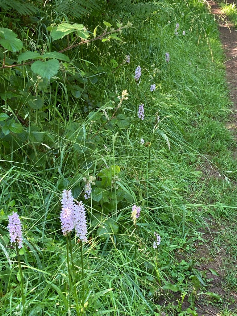 We overtook him, to be fair he was stopped and on the phone, and headed off downhill again then, yes, uphill. However this rather steep bit of uphill had a very welcome bench at the top where we stopped for elevenses. And when the man we had passed arrived we made space for him on the bench too.