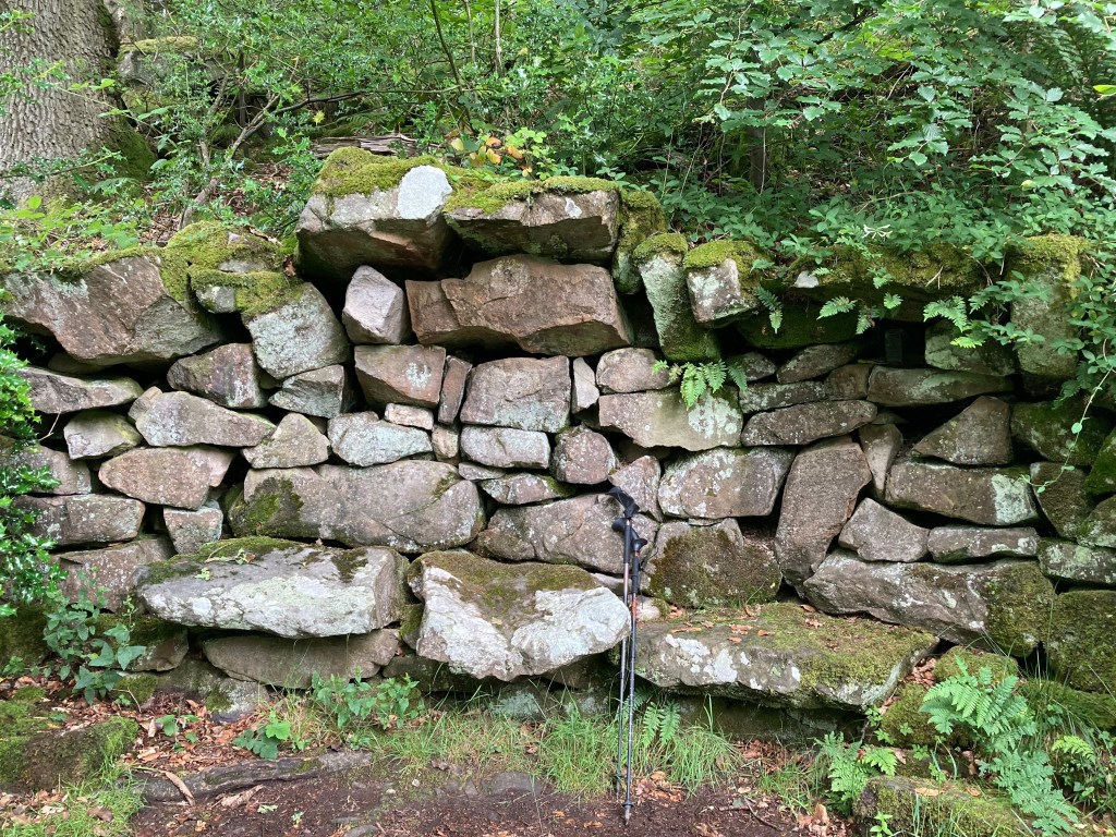 We knew we had a long day today so were pressing on trying to make halfway by lunchtime when we came across a perfect bench. The guidebook says it was made by miners and quarrymen, and it was just the best thing for two weary walkers, until a very cute little mouse stuck its nose out to assess our lunch. Helen does not like mice. She shot off the bench to a safe distance whilst the mouse retreated and I gathered up our lunch.