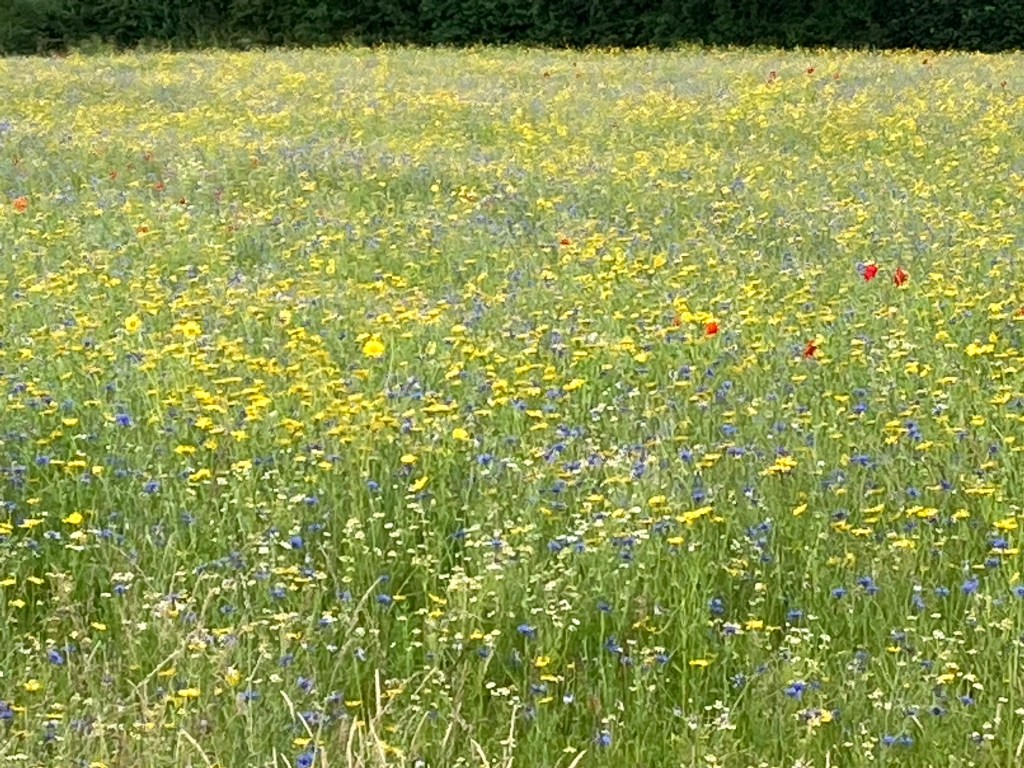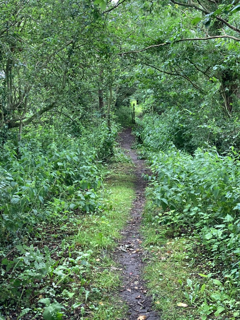 I walked through Farndon (Matt Hancock went to primary school here) noting the changes since I was last there- a refurbished pub has opened as well as a natural burial ground currently looking lovely as a wild flower meadow. And then the rain started. I was still wearing my waterproof trousers from this morning, and my backpack cover was on so it was the work of a moment (or three) to wrestle my jacket out of my bag. I arrived at my mother’s ten minutes later dripping wet but pleased to have arrived after a short ten mile day.