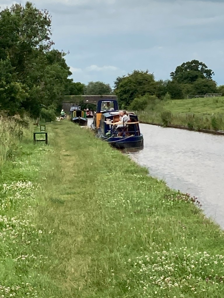 I carried on down the canal, I saw a heron and plenty of boats. There was a useful notice board at a flat area (more picnic benches, hats off to the Canal and Rivers Trust) which said that this had been a clay pit, most active in the 1980s, when the clay was used to repair the canal. The board also mentioned the canal breach in 1958 when a burrowing rat caused a whole section of the canal to empty. Seven miles of canal emptied in three hours. That’s twenty million gallons. Must have been quite a sight.