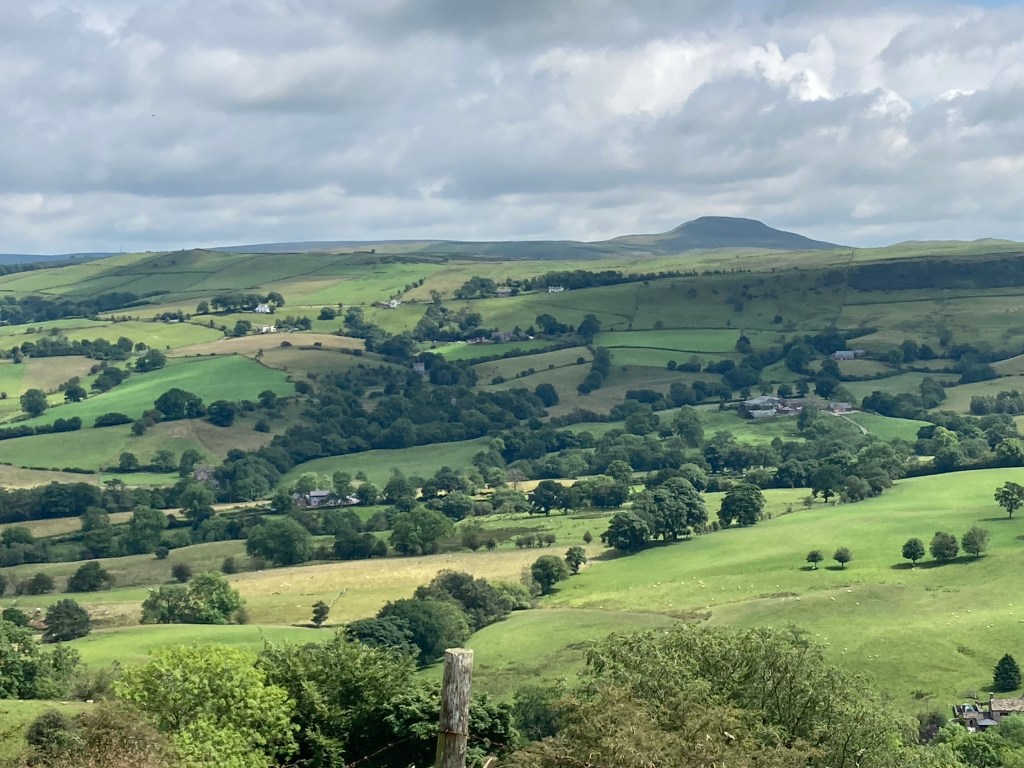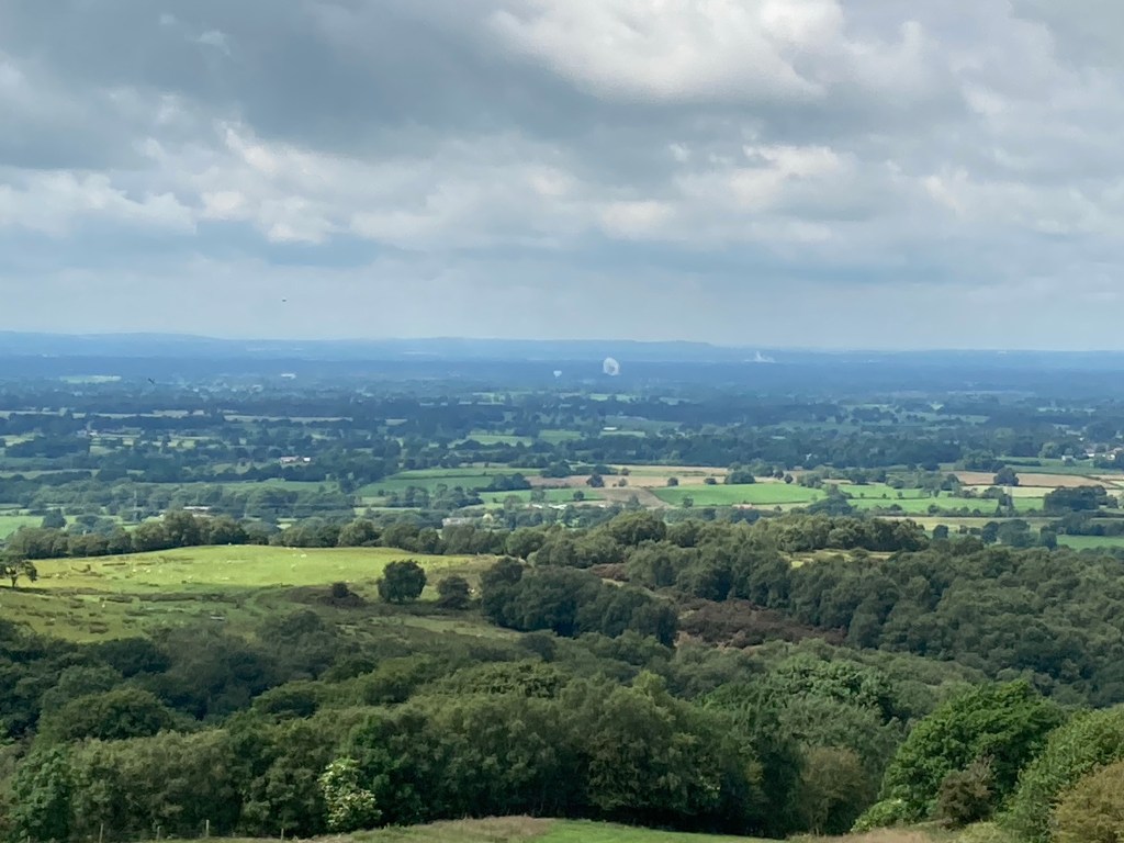 My path now took me eastwards, up into the hills. Up and up, but fairly gently and after some time I reached a ridge, the Gritstone Trail. I looked back and was treated to the most far-reaching view yet. Across Cheshire to Beeston (stands out as it is a lone rock) and beyond that to the Welsh hills. I could also see the Cheshire plain northwards as well. I’ve added a photo (I don’t think you can see Beeston in this one ) because there is a large white thing in it and I wondered if anyone knew what it was?
