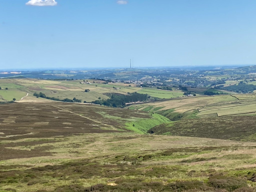 The first couple of hours were uphill but after that the path flattened out. There were more flagstones but the route didn’t seem as monotonous as yesterday. We passed Black Hill and before too long the land fell away revealing views into the flatlands below. Flatlands? Where had the Pennines gone? Round the corner, apparently.