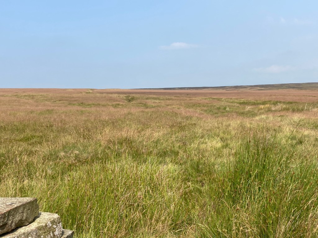 The view on reaching the top Ickornshaw Moor, was again, of moorland stretching away to the sky. There was no-one in sight until, quite a bit of flagstoned path later, the path turned downwards and two teenage boys with backpacks came from the other direction.