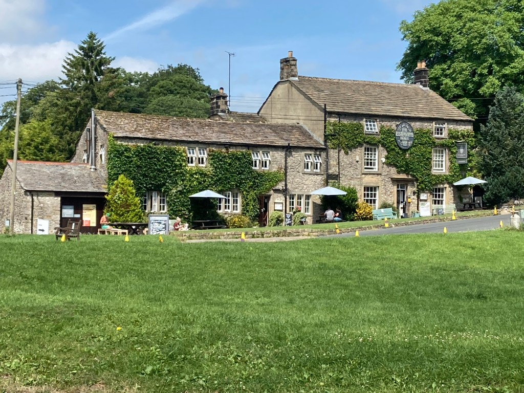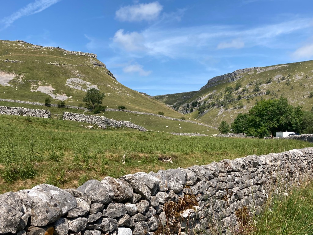 I walked back to my tent, and sat and read for a while (there was a chair which I appropriated) before heading back into the village. I visited the National Park Visitor Centre, and read about the limestone. I walked to one of the pubs to book my dinner only to find that they were completely full. I tried the other pub-full inside but if I could get an outside table that would be OK. I bought a Yorkshire ice cream. Definitely not God’s Own ice cream, the Cornish ones were much better. I might not say that in public here in Yorkshire though.