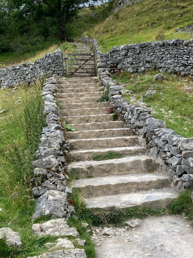 I walked the mile and a half to Malham Cove-a large cliff-face-and started the steps. There were certainly a lot of them but I took them slowly and, before too long, reached the top.