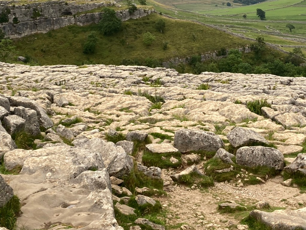 The top was a limestone pavement, very familiar from school geography lessons as I think all the photos were of Malham. The pavement was also used in one of the later Harry Potter films.