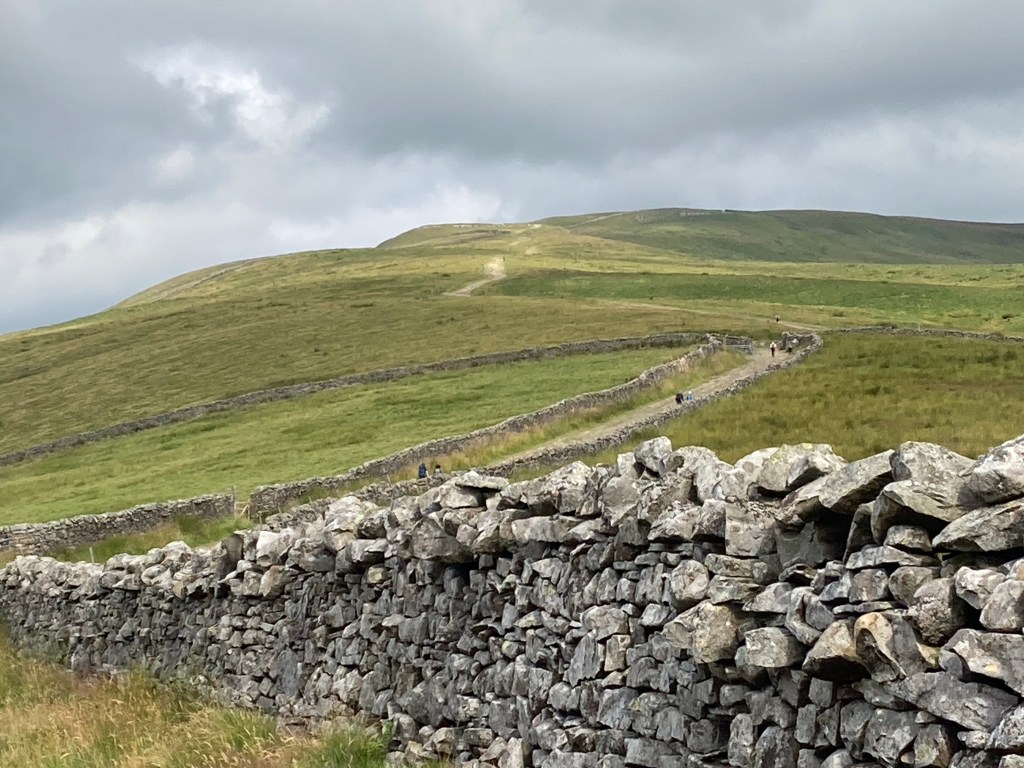 Being made of stern stuff we eschewed the flesh pots, or at least the cakes, of Hardraw, and pausing only to chat to a dry stone waller about his craft, we turned uphill. We could see the path ahead of us for quite some way, ever upward but at least the gradient was gentle.There were a lot of people today, I’m not really sure why. And there were also more wild raspberries.