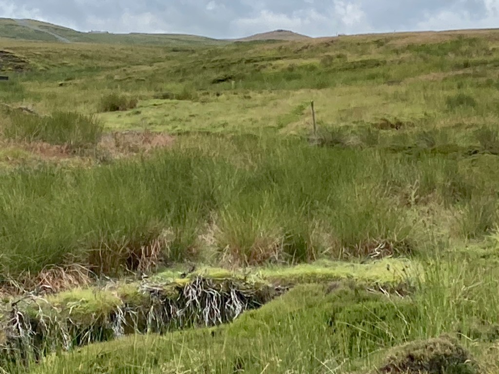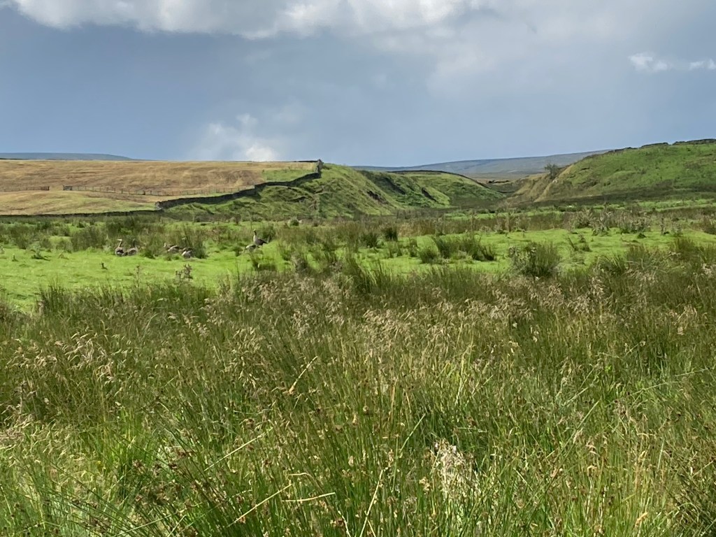 This morning’s route lay across Sleightholme Moor described in my guidebook as “bleak and boggy”. Boggy it certainly was-our feet squelched for the first few miles. we disturbed a grouse, saw some peewits (yes, lapwings) and noted the grouse butts ready for the shooting season