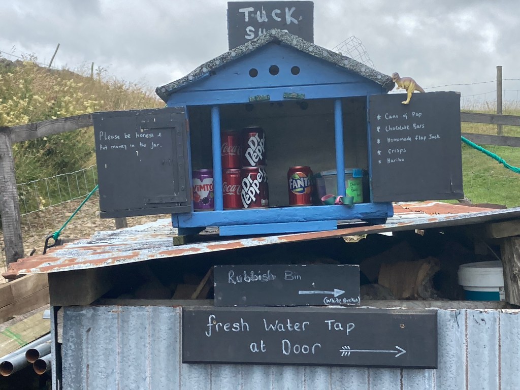 A little bit further on, we came across a sign saying Tuck Shop Ahead. We were intrigued. And there was indeed a tuck shop. We had a can each. Now we were on the last push-over the hill between Lunedale and Teesdale. It seemed quite a long hill, but the gradients were gentle and there were gates rather than stiles, so all was well.