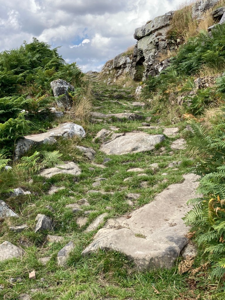 Horneysteads Farm provides a pit stop service for walkers. There is a loo and a shower and refreshments. There are snacks as well. I sat down on a sofa and had a packet of crisps and some water. I set off, fortified. Passed some lovely farmhouses and then walked along a road. I saw a black car parked ahead of me. I wonder if that’s Chris? I thought. But no, there were two people in the car. And then Chris got out, along with Daniel who had had to stop walking due to an enormous blister. We chatted for a while (the other two were at Horneysteads) before I walked on to Bellingham.