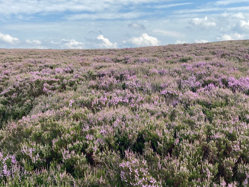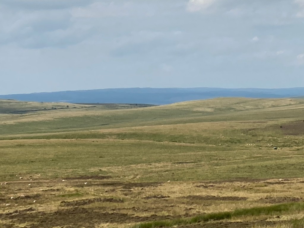 The countryside was wide open and empty. We walked on and on, over the hills, and over lots of dry peaty areas that in another summer would have been boggy. Far ahead of us we could see Chris’s car. The lads were there as well. We hoped he’d still be there when we passed but we saw him drive off. We were disappointed. (Chris did say later that he hadn’t seen us or he would have waited.) Our disappointment was tempered however by the fact that there was a flagstone path, always welcome as you know you’re on track (and we had veered away from the path earlier) and that your feet will be dry.