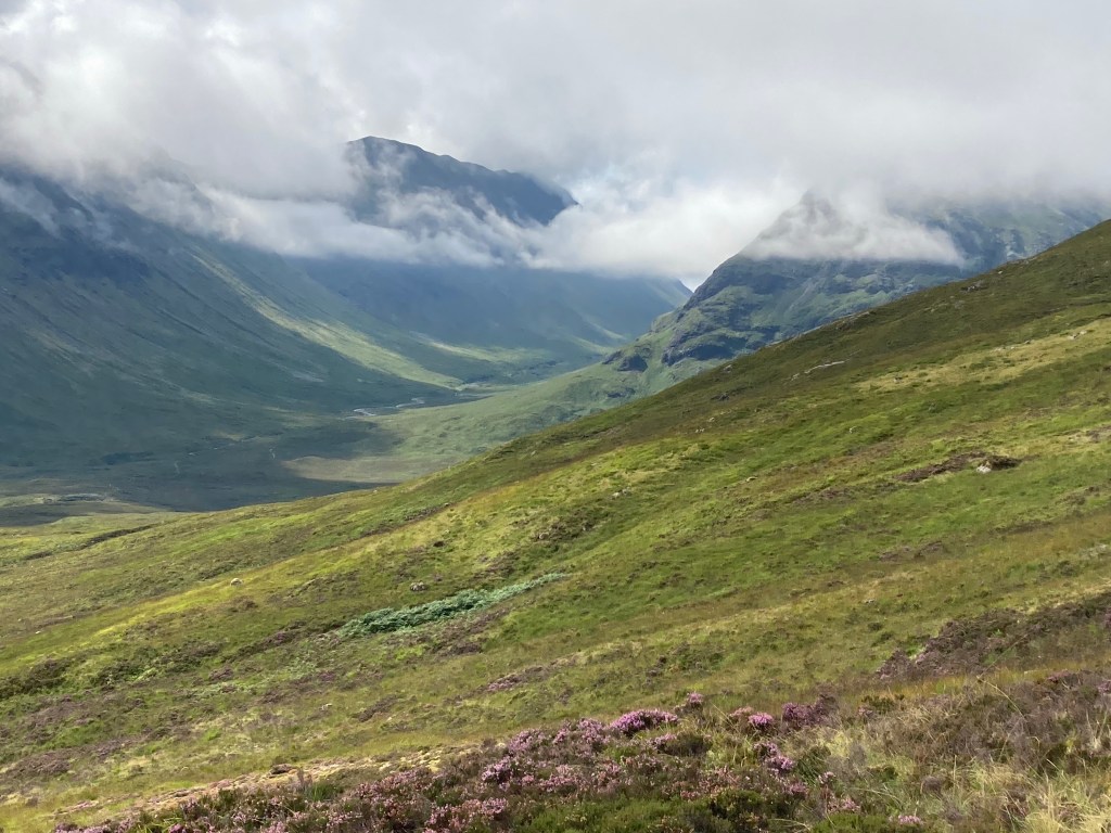 Low cloud this morning. When we went for breakfast Buachaille Etive Mor was completely obscured by cloud