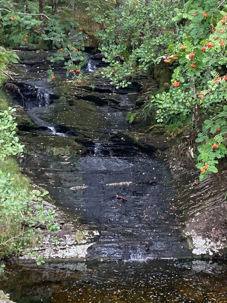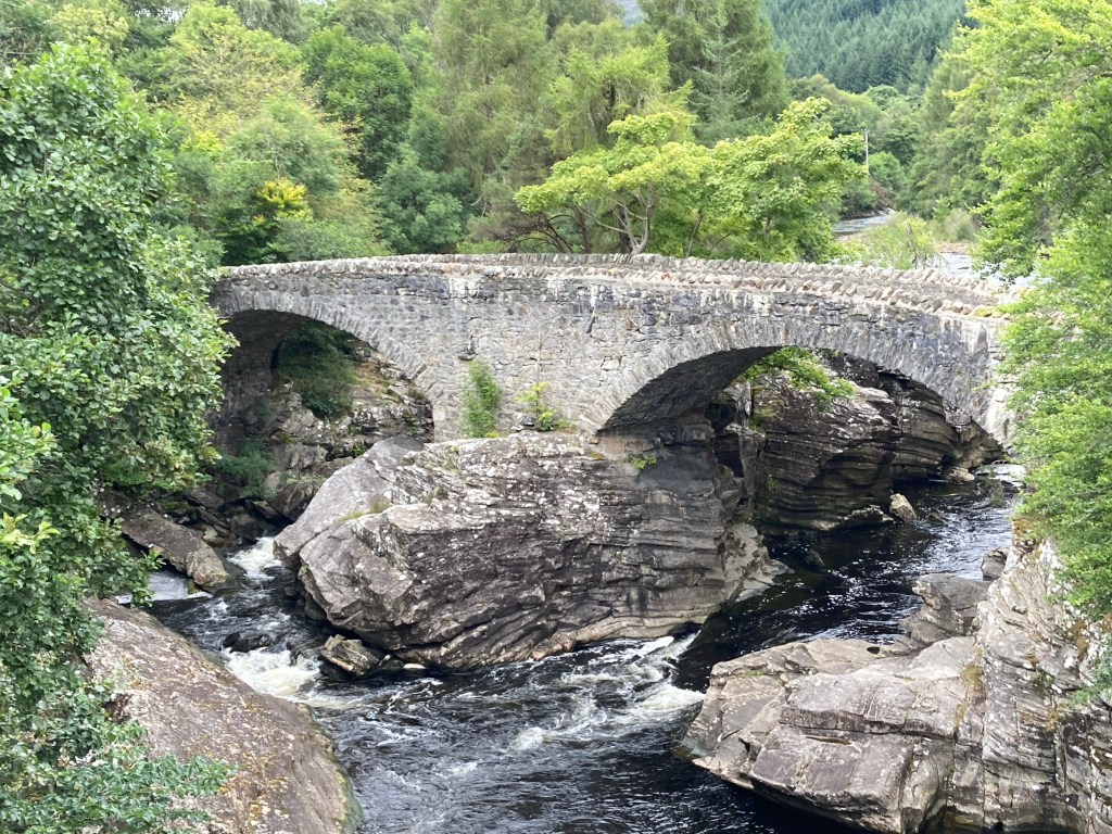We wound our way down the rather steep path into Invermoriston, feasting on the most perfect wild raspberries. We paused to look at Thomas Telford’s bridge, admiring the waterfalls beneath it.