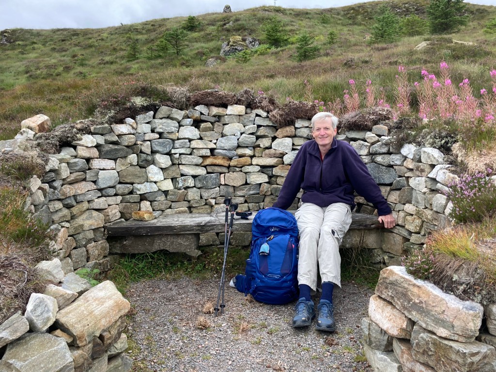 The path then wound on over the hills until the turnoff for Alltsigh and the hostel. It was a good mile (1.3 actually) downhill, and towards the end I was ready to finish for the day. It’s the longest I have worn my new shoes in one go (12.5 miles) and my feet were hurting, although there were no new blisters. We did find our first tick though which I skilfully removed from Matthew’s leg