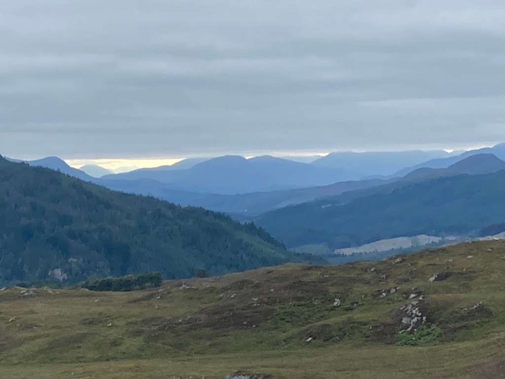 There was a choice of route today. We opted for the high route which was wonderful. We climbed up and up through woodland until we reached the tree line and could look back down past Fort Augustus.
