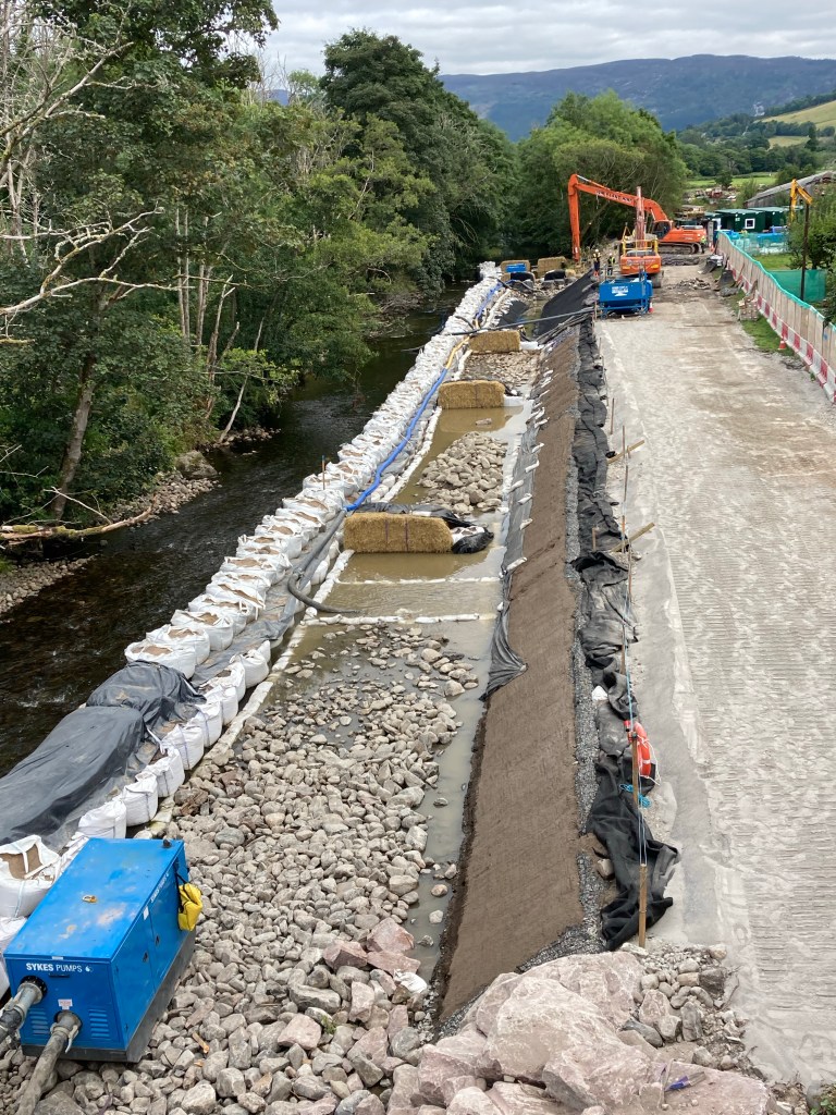 We spent the afternoon-the day was only eleven miles -mostly lying on our beds with feet up in anticipation of tomorrow’s nineteen mile day. However I did take a photo of some impressive river engineering works that were going on (flood defences?)