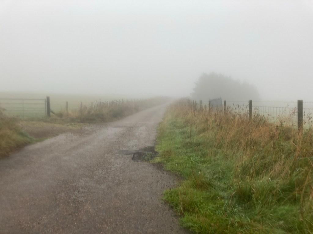 It really was foggy today. I did a lot of jumping on and off the verge as I wasn’t sure how visible I was to the oncoming traffic.