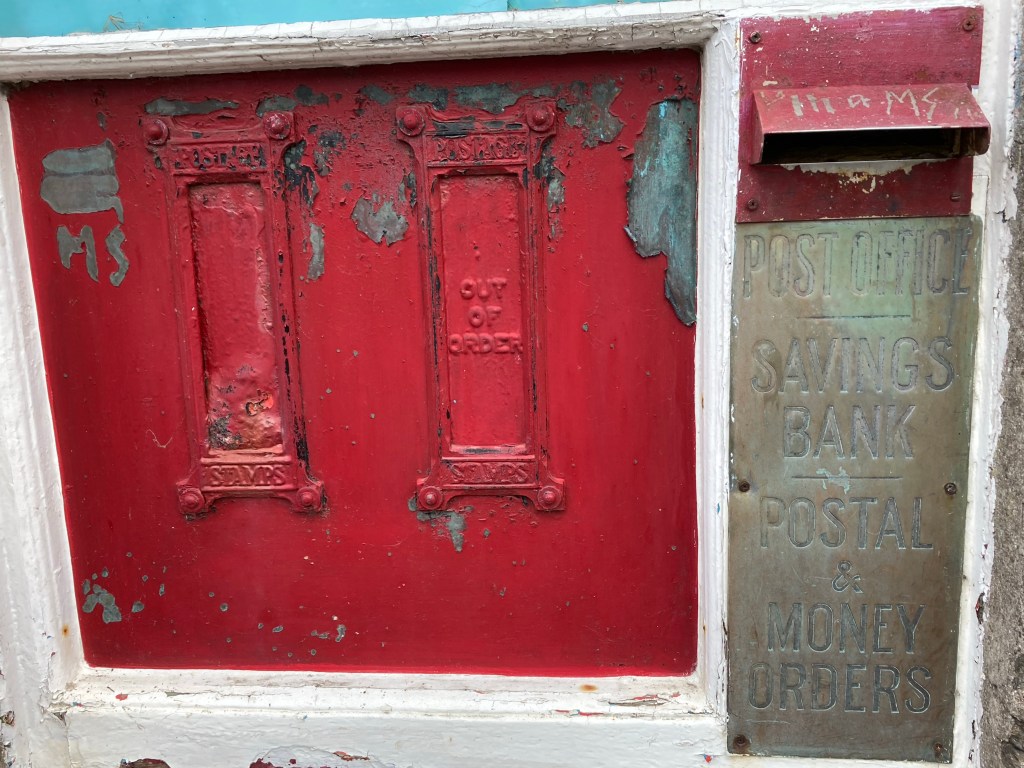 Old stamp dispensing machine outside the Post Office. I’ll spare you the postbox although you can see it in the picture of the street